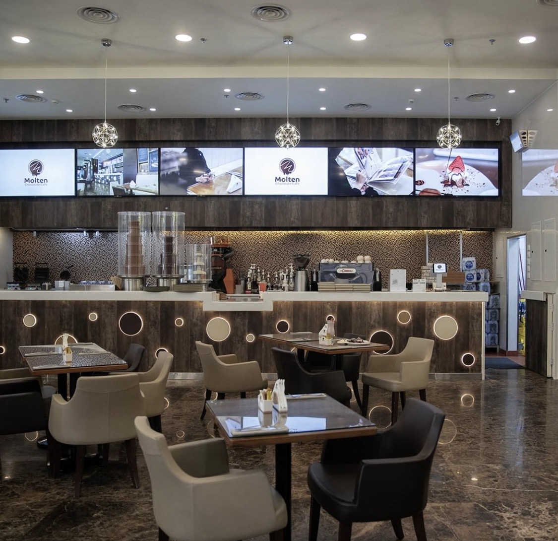 مولتن شوكليت كافيه لتقديم اطباق متنوعة من الحلويات والمشروبات القائمة والباردة