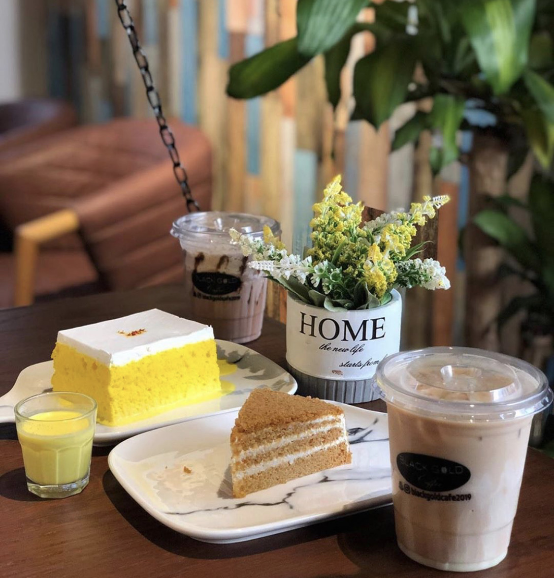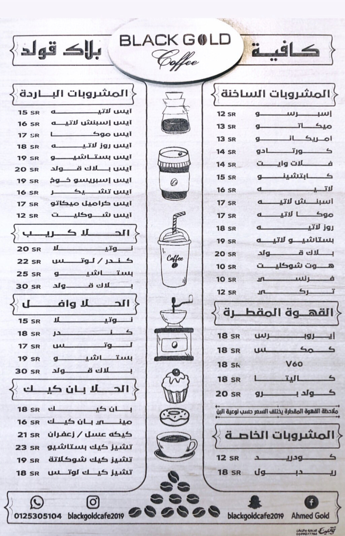 كافي الذهب الأسود المتخصص في تقديم اطباق مختلفة من الحلويات والمشروبات الساخنة والباردة