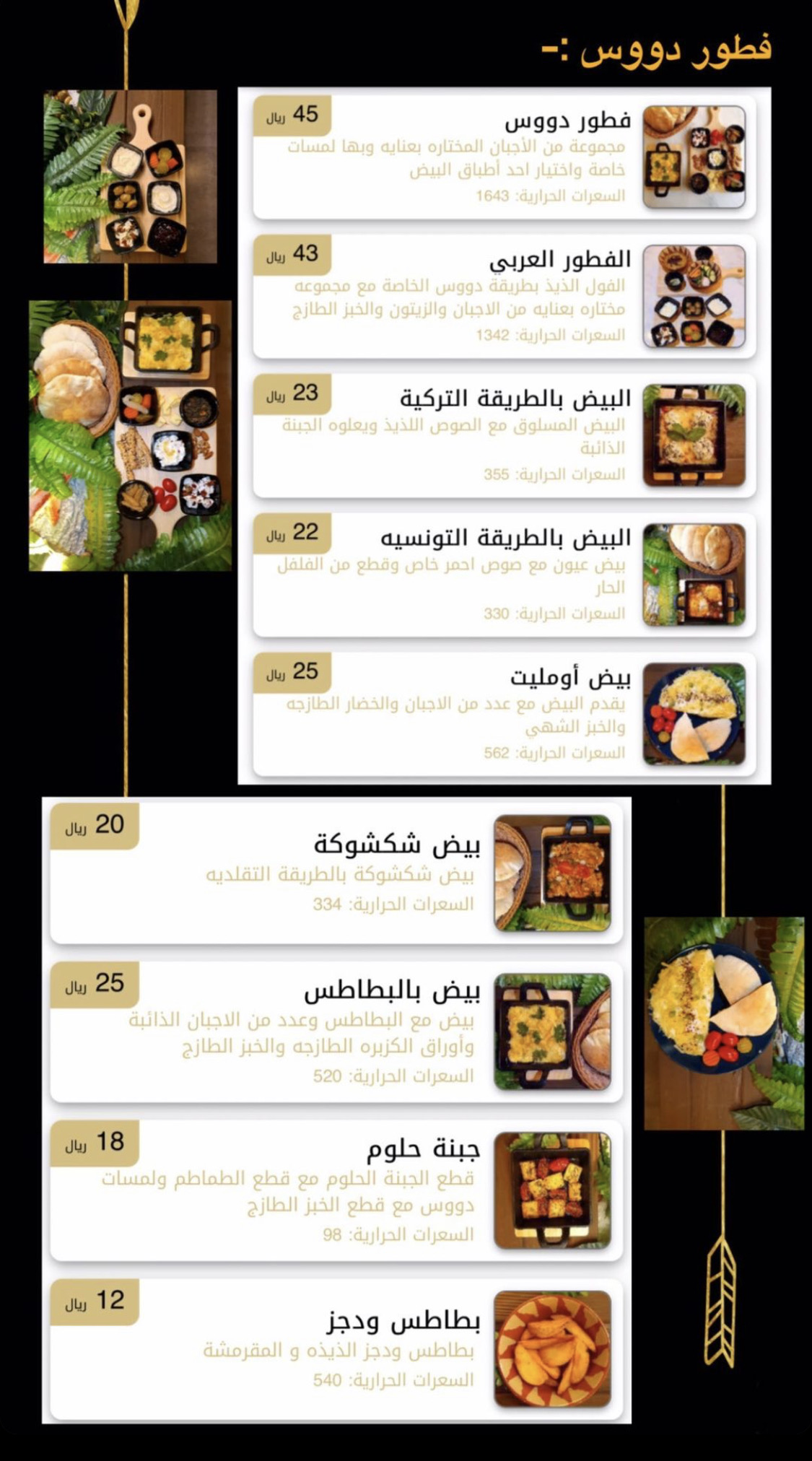 دوس يقدم اطباق متنوعة من الإفطار والمشروبات الساخنة والباردة