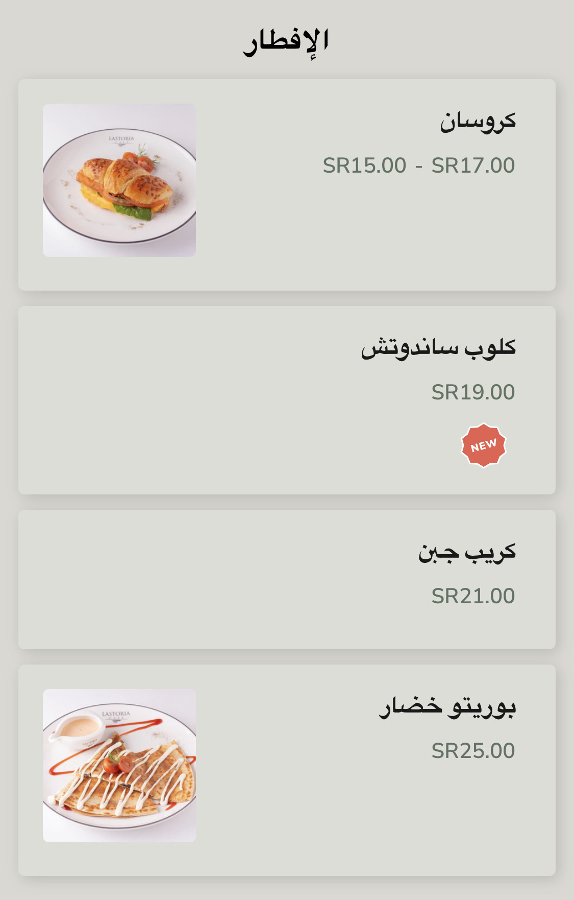لا ستوريا كافيه يقدم لكم اطباق مختلفة من المخبوزات ووجبات الإفطار. لديهم مواقع اخرى ( العوالي - الشرائع - مكة مول )