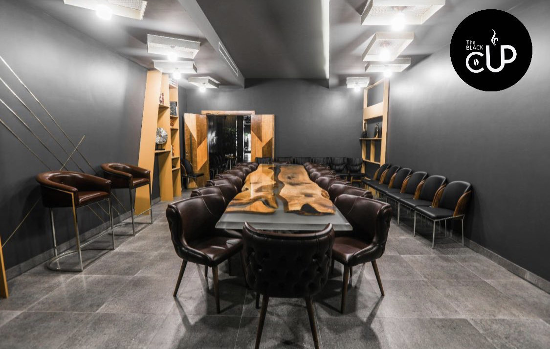 الكوب الأسود كافيه من الكافيهات المتخصصة بتقديم اطباق متنوعة من المشروبات الساخنة والباردة واطباق الحلويات المختلفة بالاضافة الى شاشات عرض المباريات ، وتوفير قاعة للاجتماعات وورش العمل .
