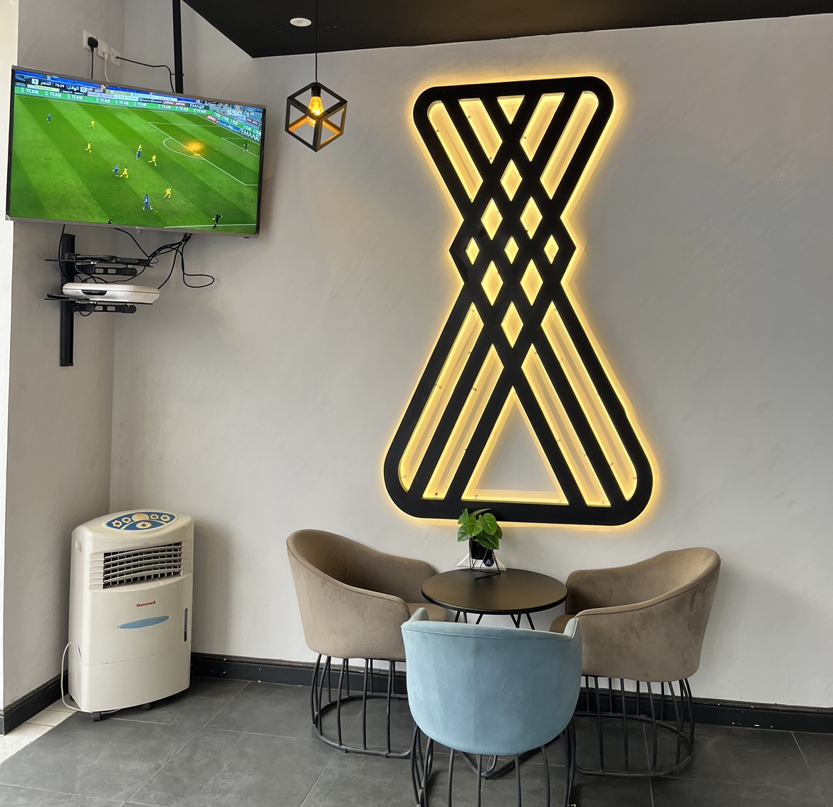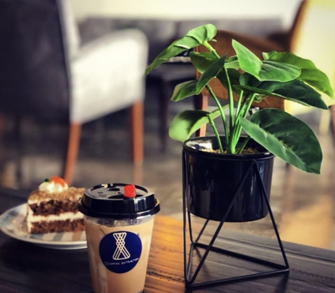 كافي استخلاص القهوة المتخصص في تقديم انواع مختلفة من المشروبات الباردة والساخنة واطباق متنوعة من الحلويات ، بالاضافة الى شاشات لعرض المباريات .